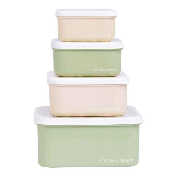 Παιδικό Φαχητοδοχείο Flowers Σετ, το οποίο αποτελείται από 4 τεμάχια, με σχέδια από λουλουδάκια.