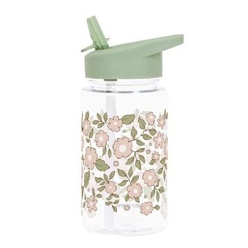 Παιδικό πλαστικό παγούρι σε διάφανο χρώμα με λουλούδια και χακί αποχρώσεις. Διαθέτει κλέισιμο με καπάκι και καλάμακι. Χωρητικότητα 350ml.