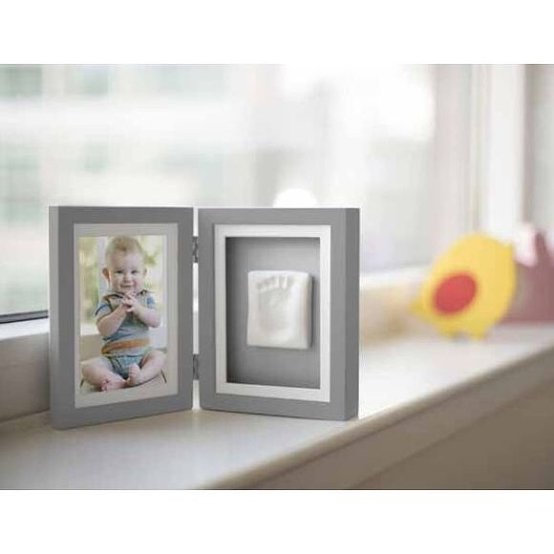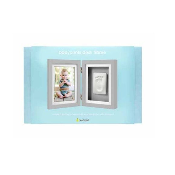 Παιδική κορνίζα από την εταιρεία Pearhead σε γκρι χρώμα με αποτύπωμα από το ποδαράκι του παιδιού.