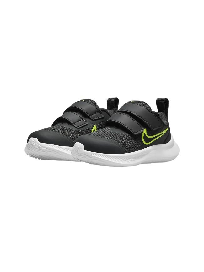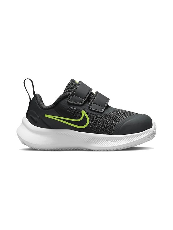 Φτιαγμένο για τα μελλοντικά αστέρια. Δημιουργήσαμε ένα εντυπωσιακό μοντέλο με τη δύναμη των αστεριών. Το Nike Star Runner 3 απογειώνει το στιλ των μικρών αθλητών με ένα παπούτσι που έχει σχεδιαστεί για παιχνίδι και τους συνοδεύει από το πρώτο μπουσούλημα μέχρι το κάθε μικρό βηματάκι. Προσθέσαμε δύο λουράκια για εύκολη αφαίρεση και εξαιρετικά μαλακό αφρό, ενώ δώσαμε έμφαση και στην ευελιξία, με στόχο την απόλυτη άνεση. Σχεδιασμένο με γνώμονα τη Γη, είναι φτιαγμένο με τουλάχιστον 20% ανακυκλωμένα υλικά ως προς το βάρος.